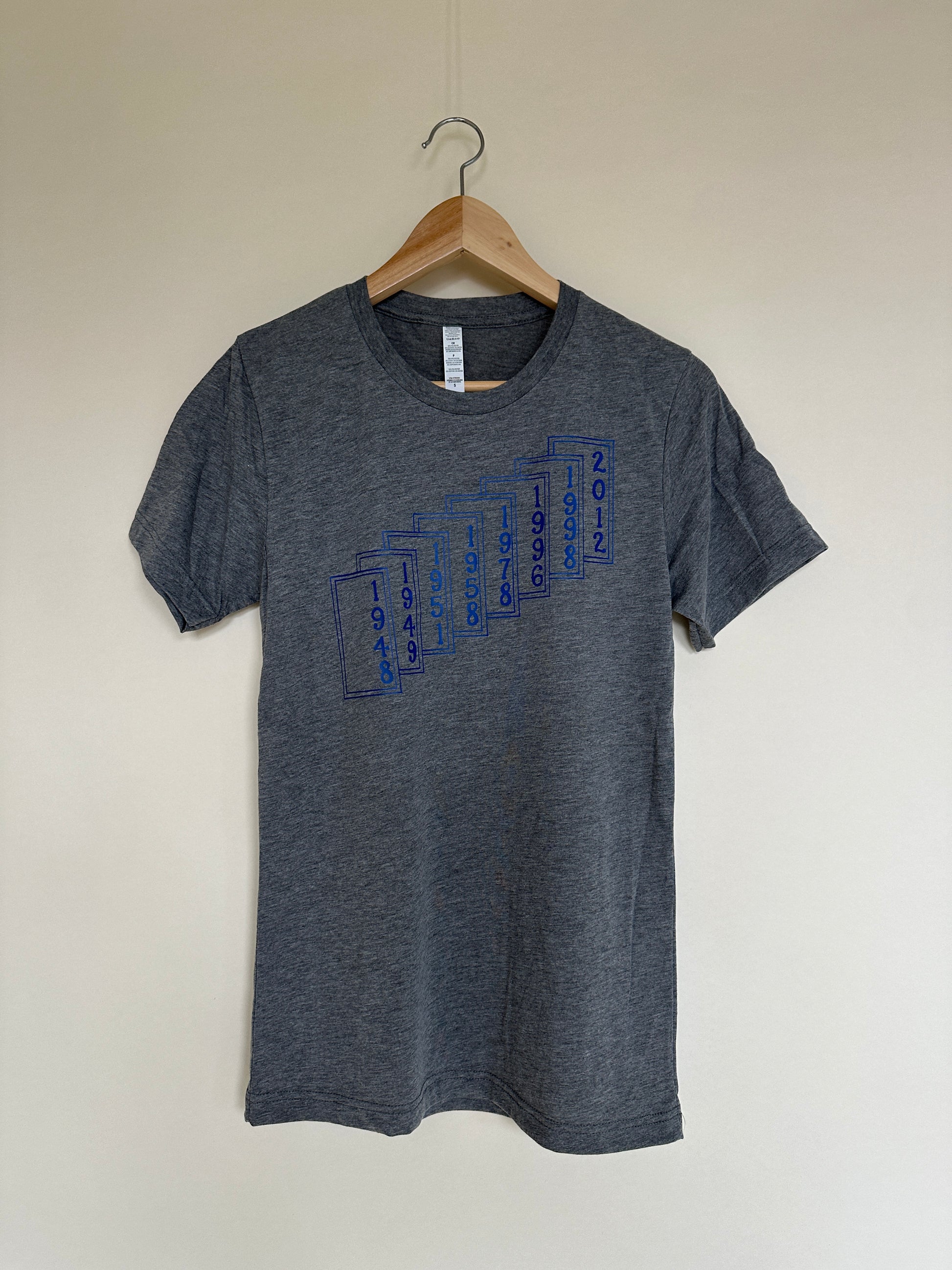 Adult unisex triblend tees with royal screenprint logo