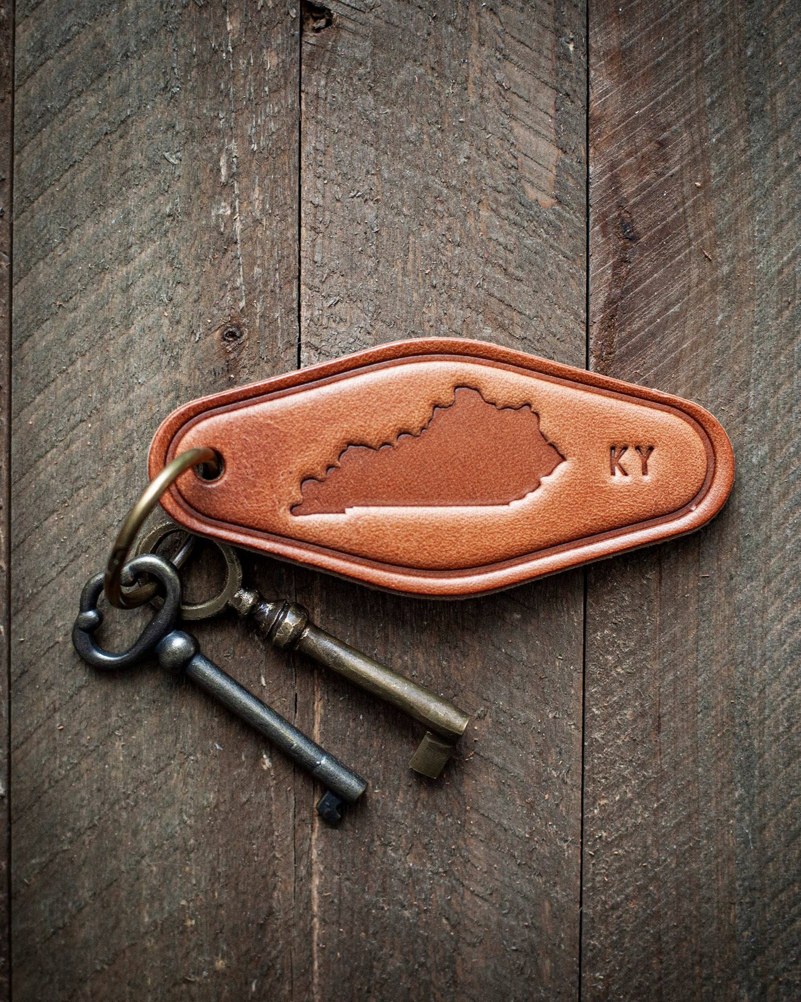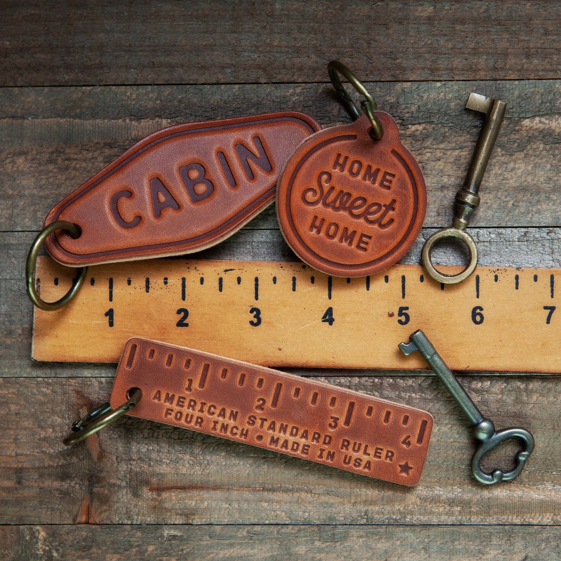 Unique and personalized gift item to offer your customers! Our leather keychains are cut and pressed by hand from some of the thickest and finest harness leather available, and patina beautifully as they age. Note: This listing is for the product in the title and appearing as the primary image. Additional images are for representation of sizes/features only.