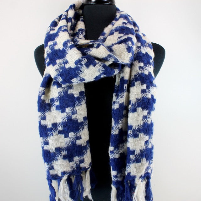 This blanket scarf will keep you warm on that long walk into Rupp! Houndstooth blue and ivory.