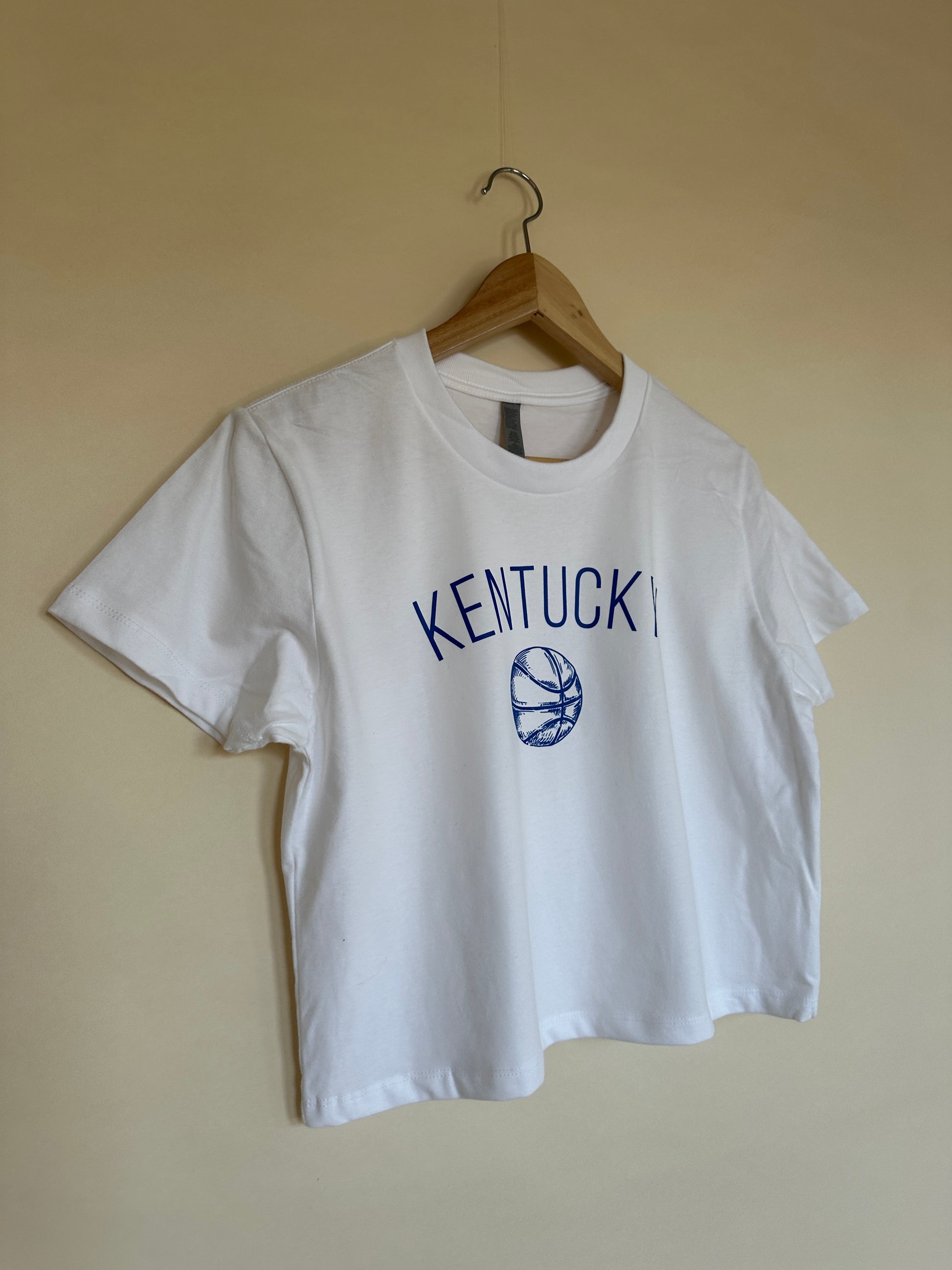 Women’s heavyweight boxy tee. Royal screenprint on white 100% cotton. Model is a size 4 wearing size small.
