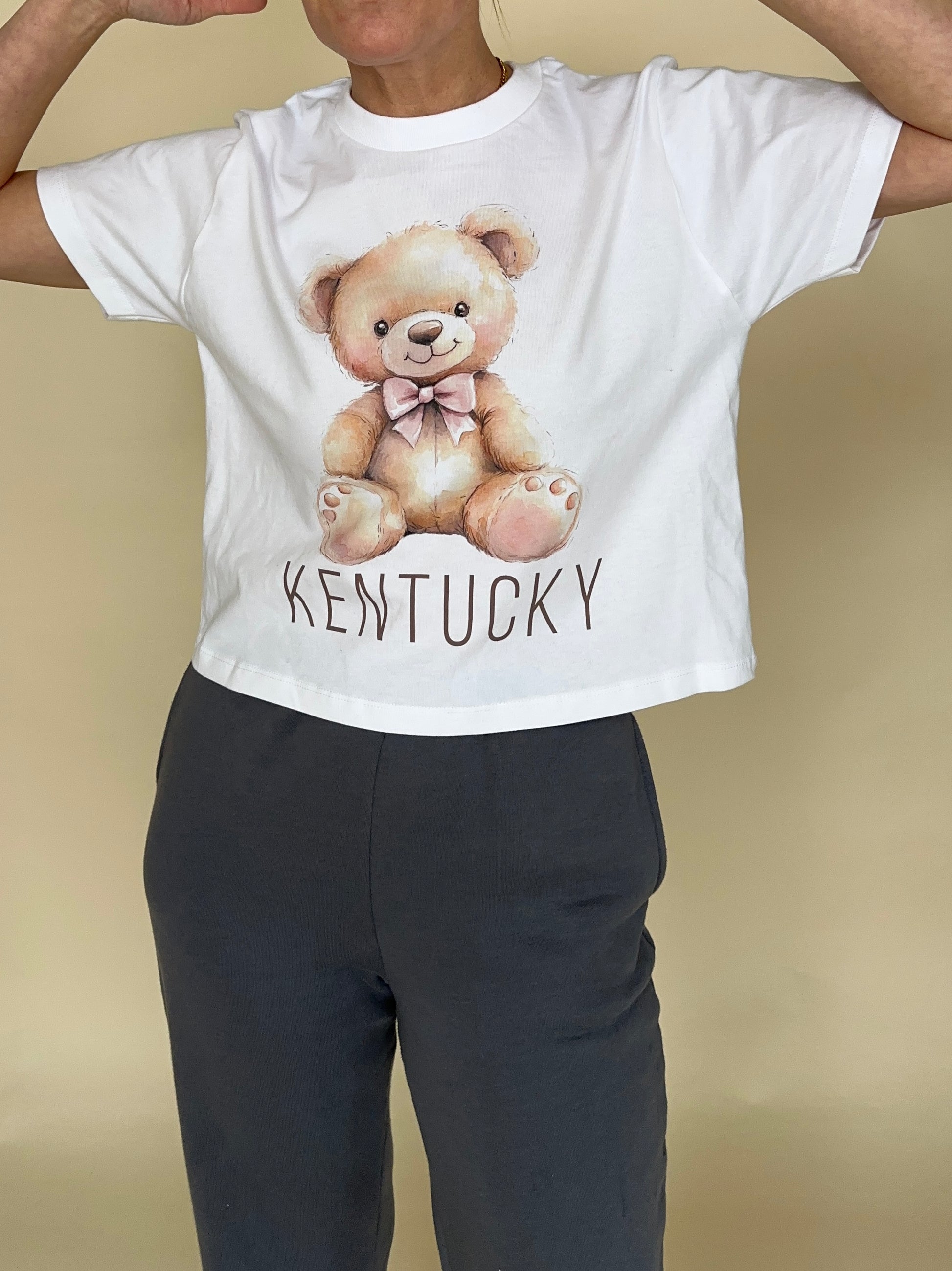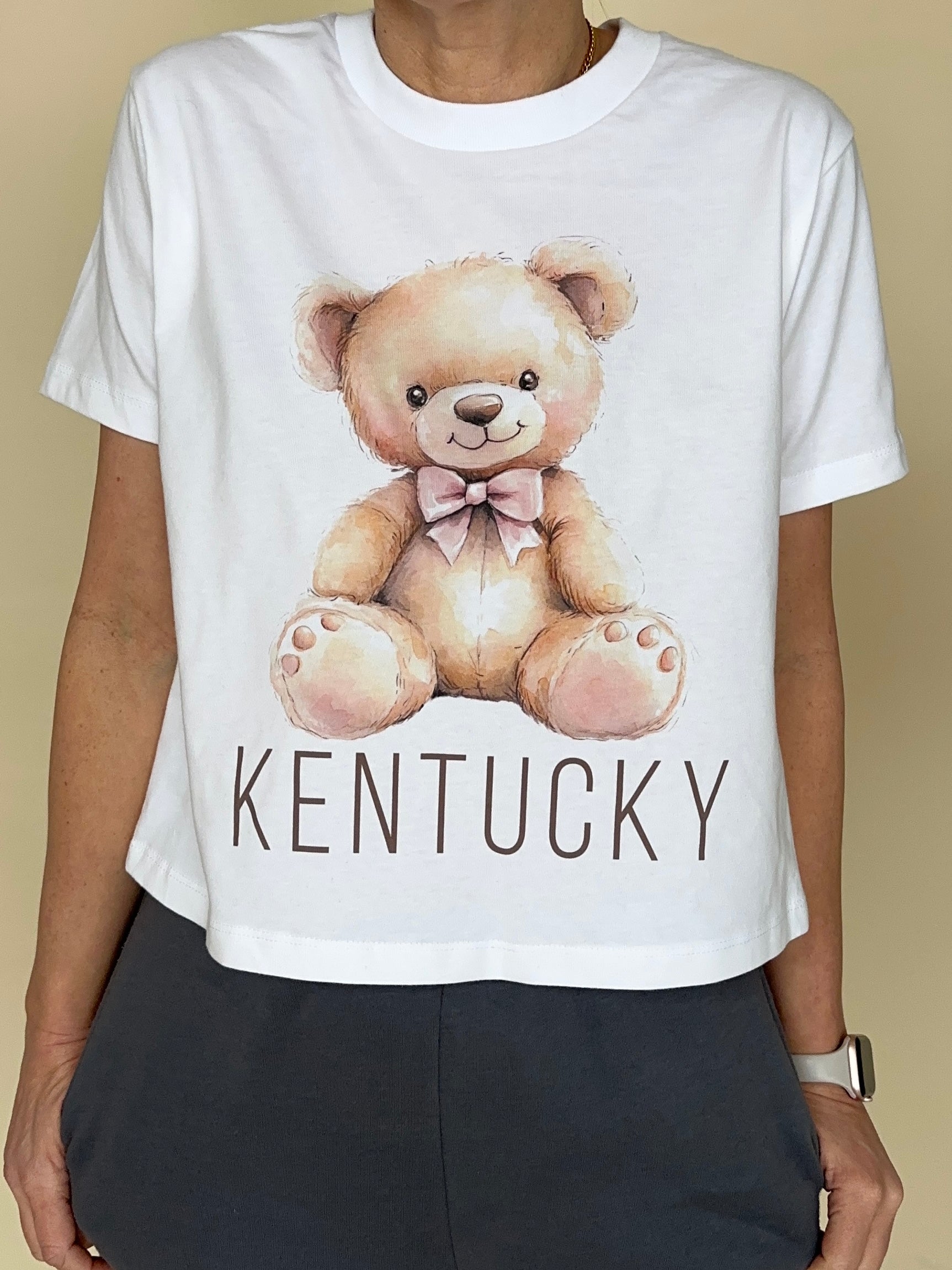 Women’s heavyweight boxy tee. Teddy bear full color print on white 100% cotton. Model is a size 4 wearing size small. *We can print the neutral teddy logo on these as well, just email us!