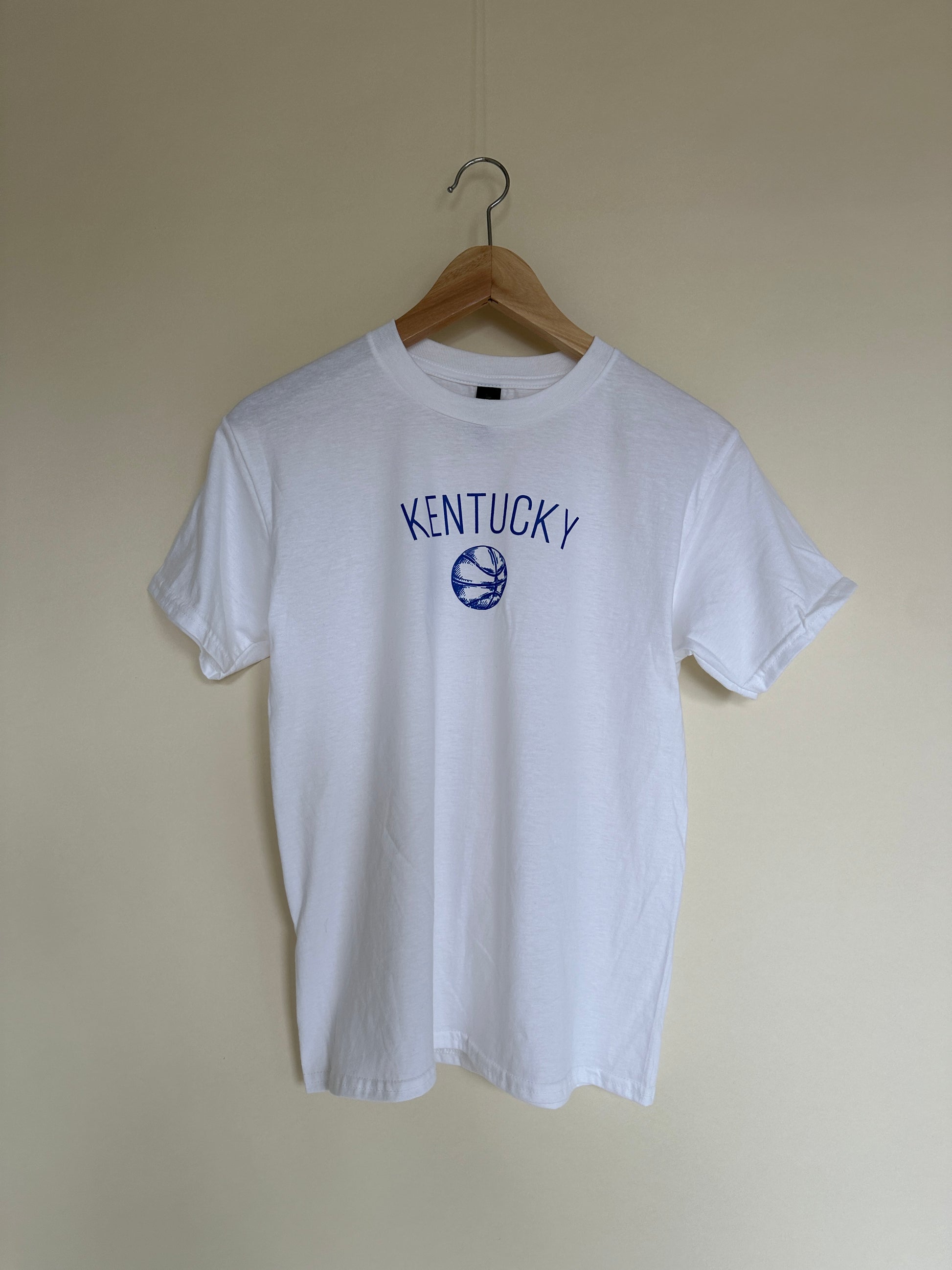 Youth unisex supersoft white cotton with royal screenprint logo.
